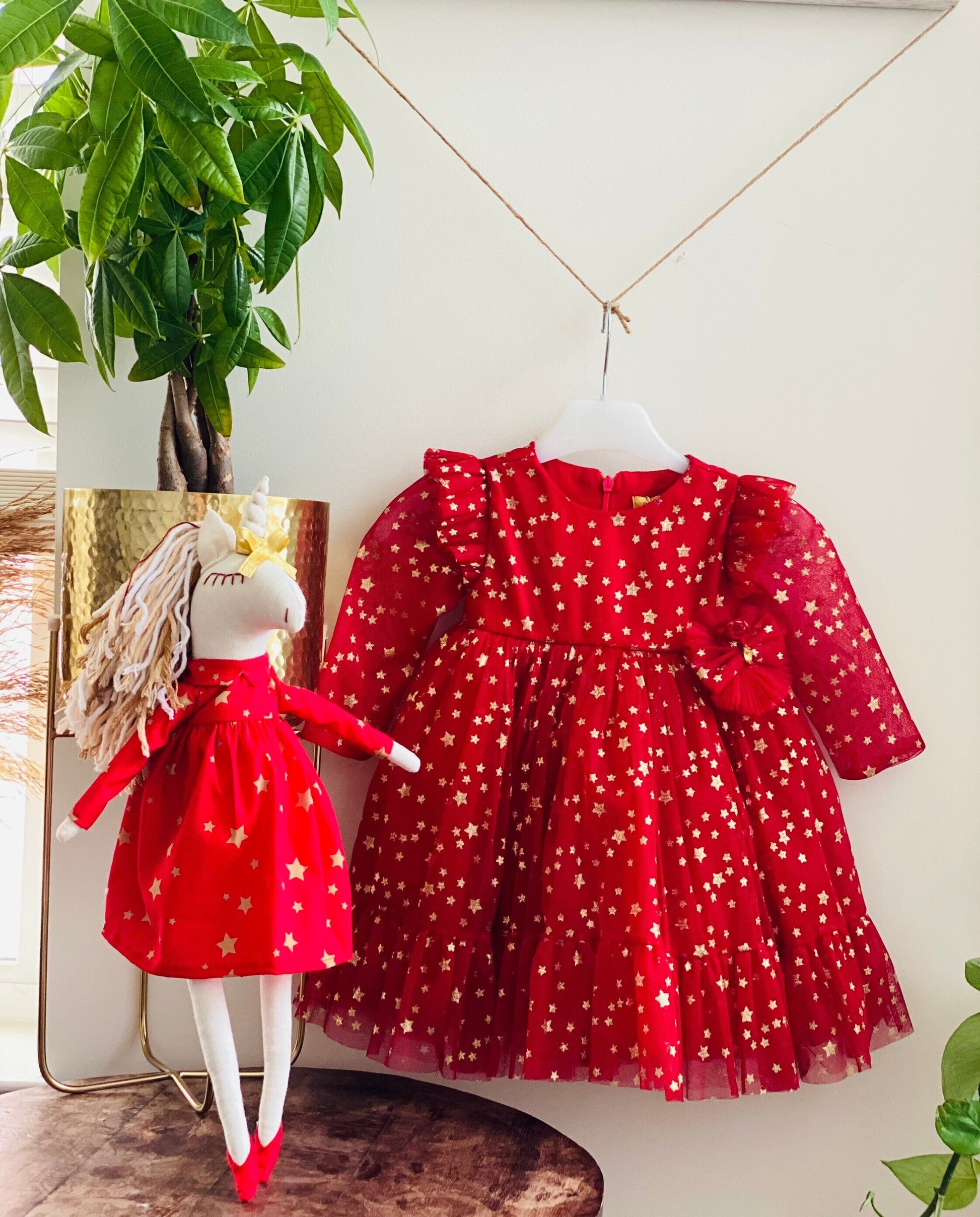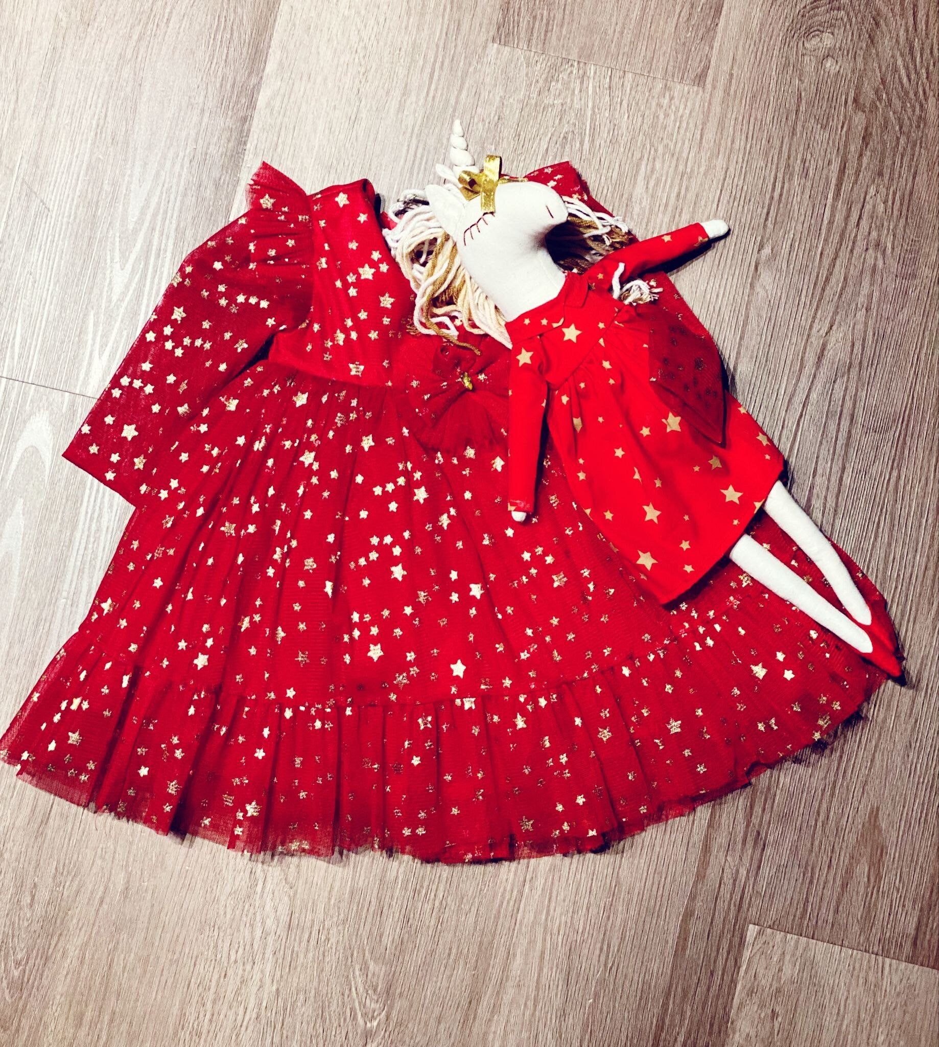 Kids Clothes - My Dress and Toy Same! CHRISTMAS DRESS FOR Toddler Girl 1 2 3 4 5 6 7 8 Years + Same Pattern Unicorn Gift for Red Lovers Birthday Party